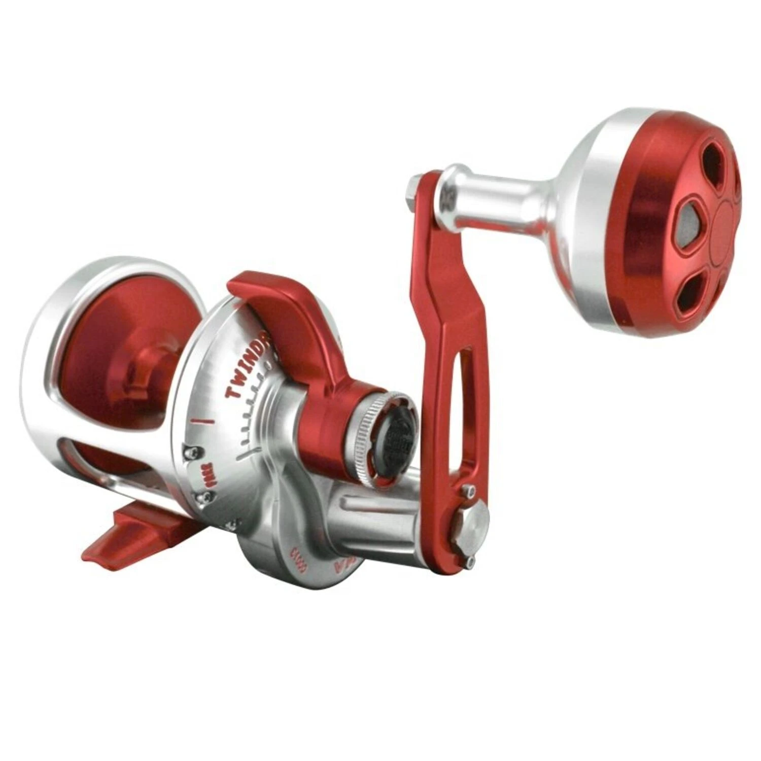 Accurate Boss Valiant BV-400 Single-Speed Lever Drag Reels have a 6:1 gear ratio and are silver/red. Choose from right and left handed models.